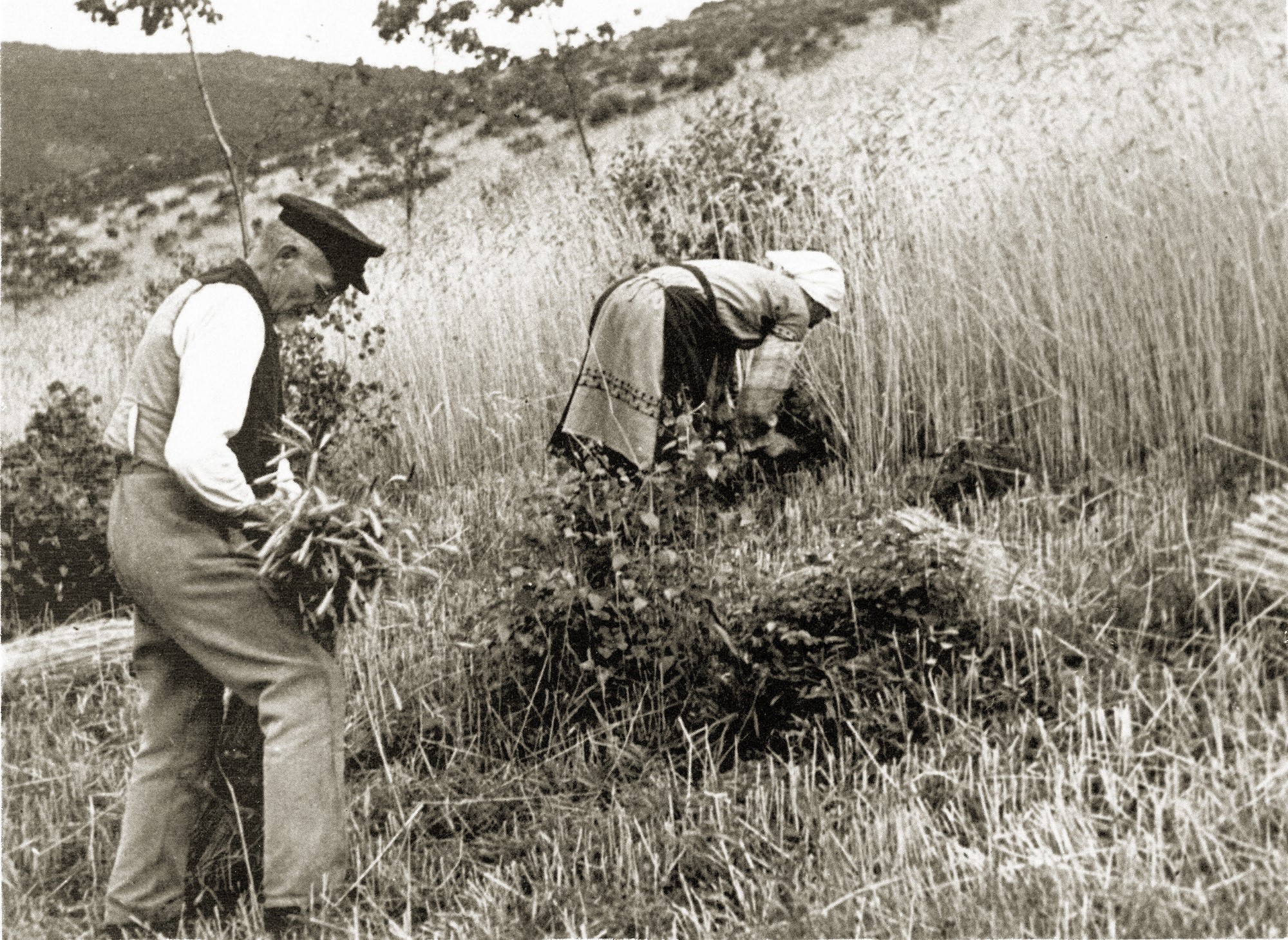 Anna und Johannes Henrich beim Kornschneiden im Eiserfelder Hauberg (1950er Jahre) (Quelle: Markus Henrich)